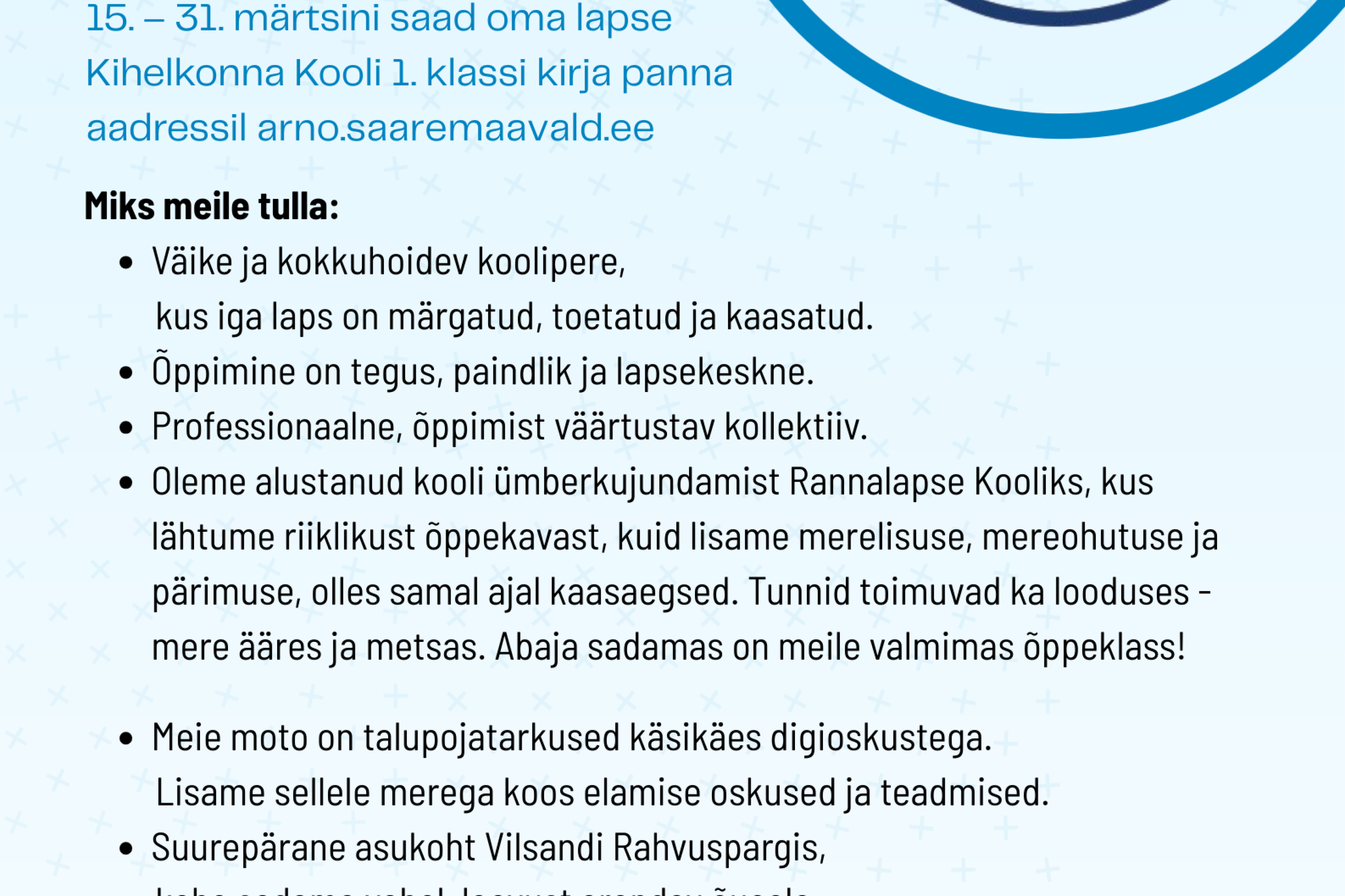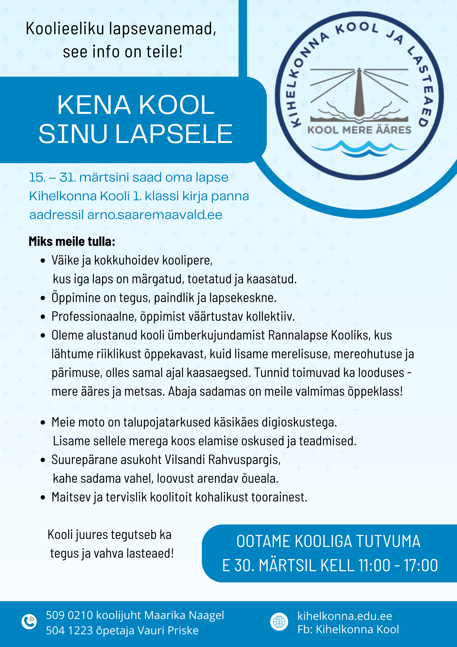 Kui otsid oma lapsele kena ja arenevat-arendavat õpikeskkonda, siis tule ja vaata meie kooli!